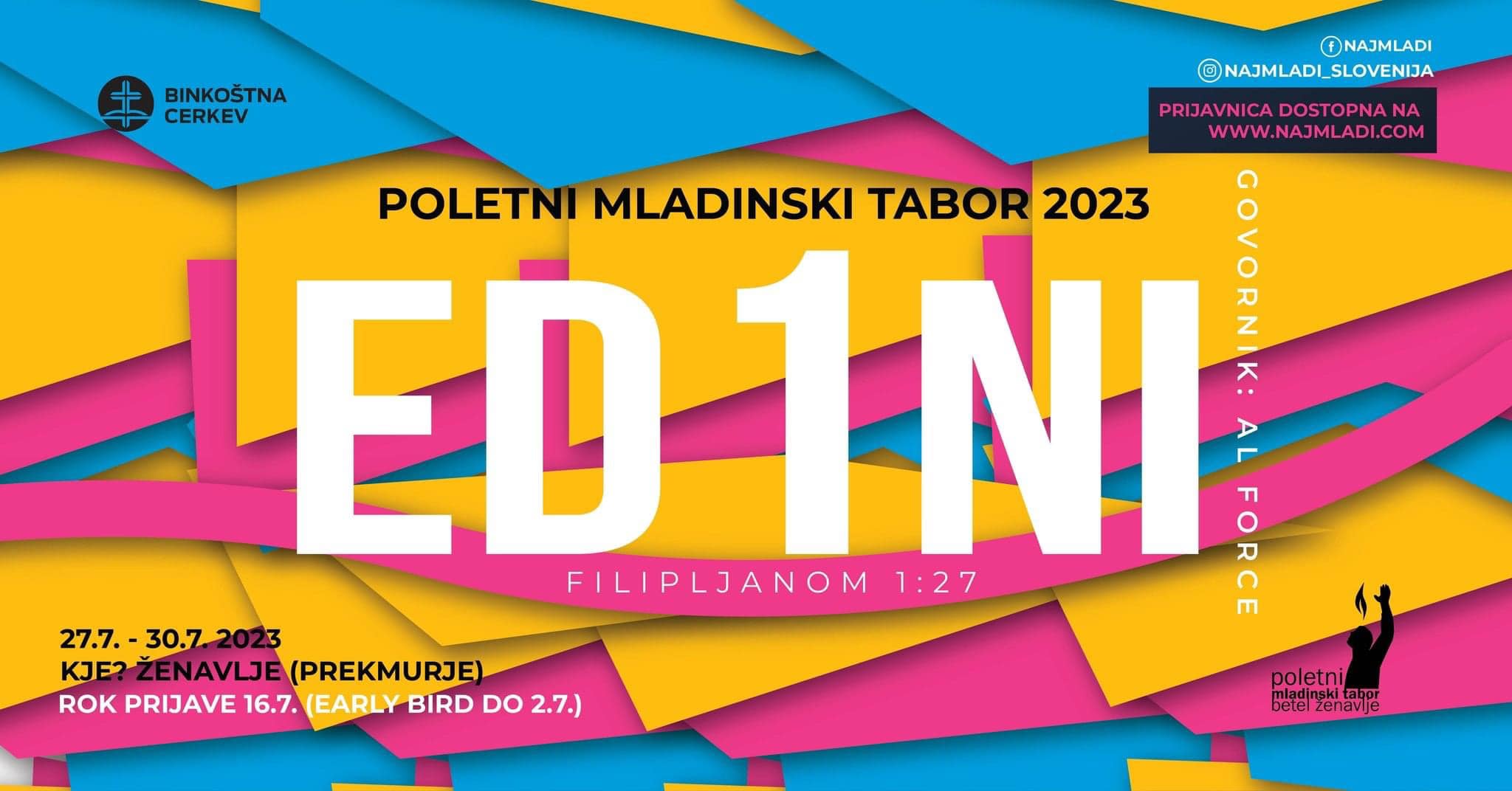 Pridruži se nam in doživi delovanje (tro)EDINEGA Boga – on daje pravo vrednost in moč za zmagovalno življenje v vseh okoliščinah! Vstopi v čas slavljenja, čas molitve, čas skupnosti, čas navdihujočih pogovorov in čas druženja. Vzemi si čas, duhovno pomemben za vse nas in se nam pridruži v Ženavljah na Goričkem.